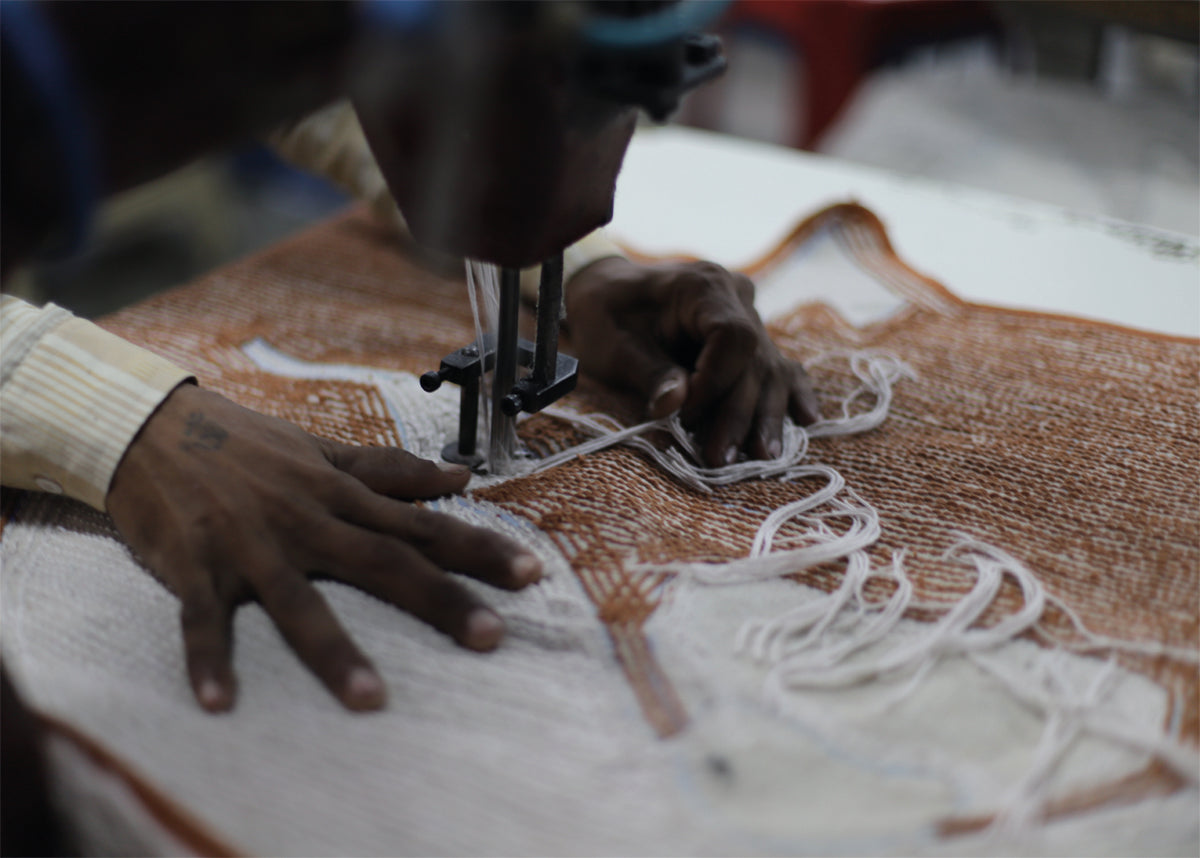Then they are tufted on machines guided by hand by artisans in Indian workshops.